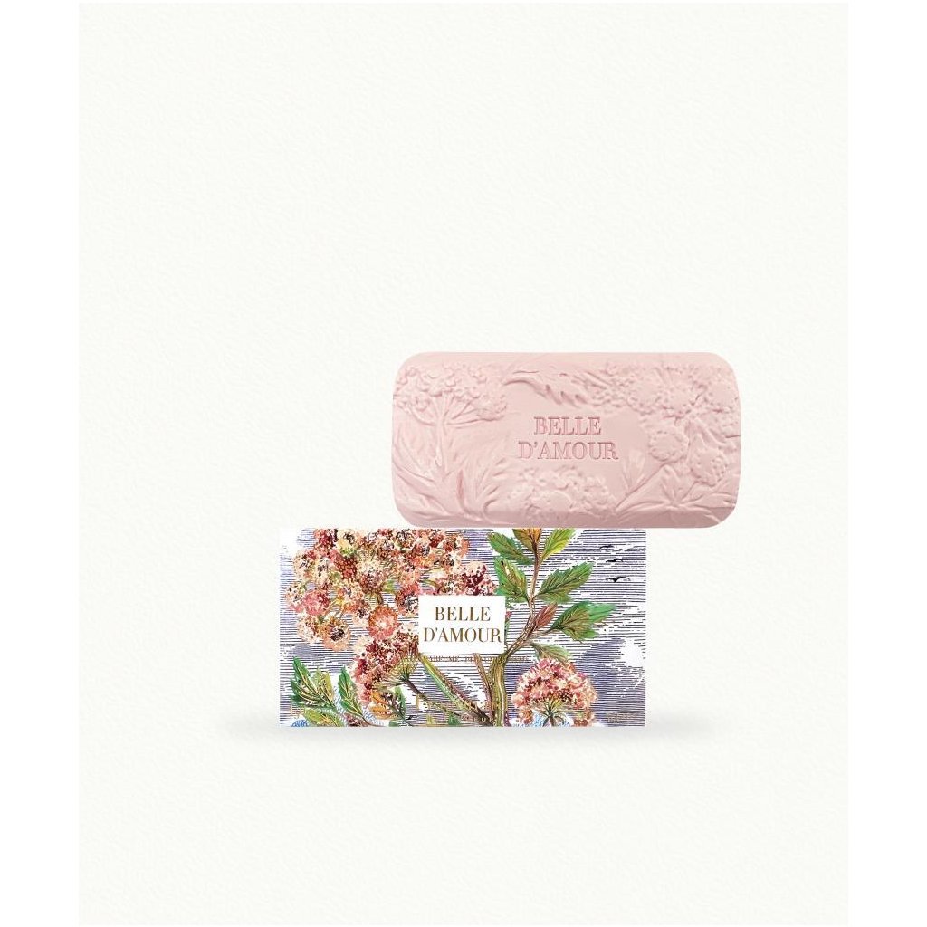 Toto elegantně vonící mýdlo je zároveň kosmetickým produktem i dekorativním předmětem a je zdobeno rytím květů anděliky, královny řady Belle d'Amour. Květinová, gurmánská vůně tohoto mýdla jemně provoní vaše ruce a zanechá je dokonale čisté. Jeho velké balení znamená, že si můžete sladkou vůni tohoto krásného růžového mýdla užívat po dlouhou dobu.