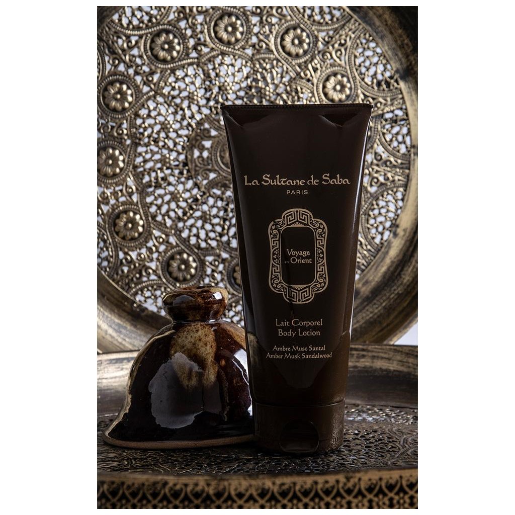 Delikátně parfemované tělové mléko s vůni Orient: ambra, santalové dřevo, mošus.