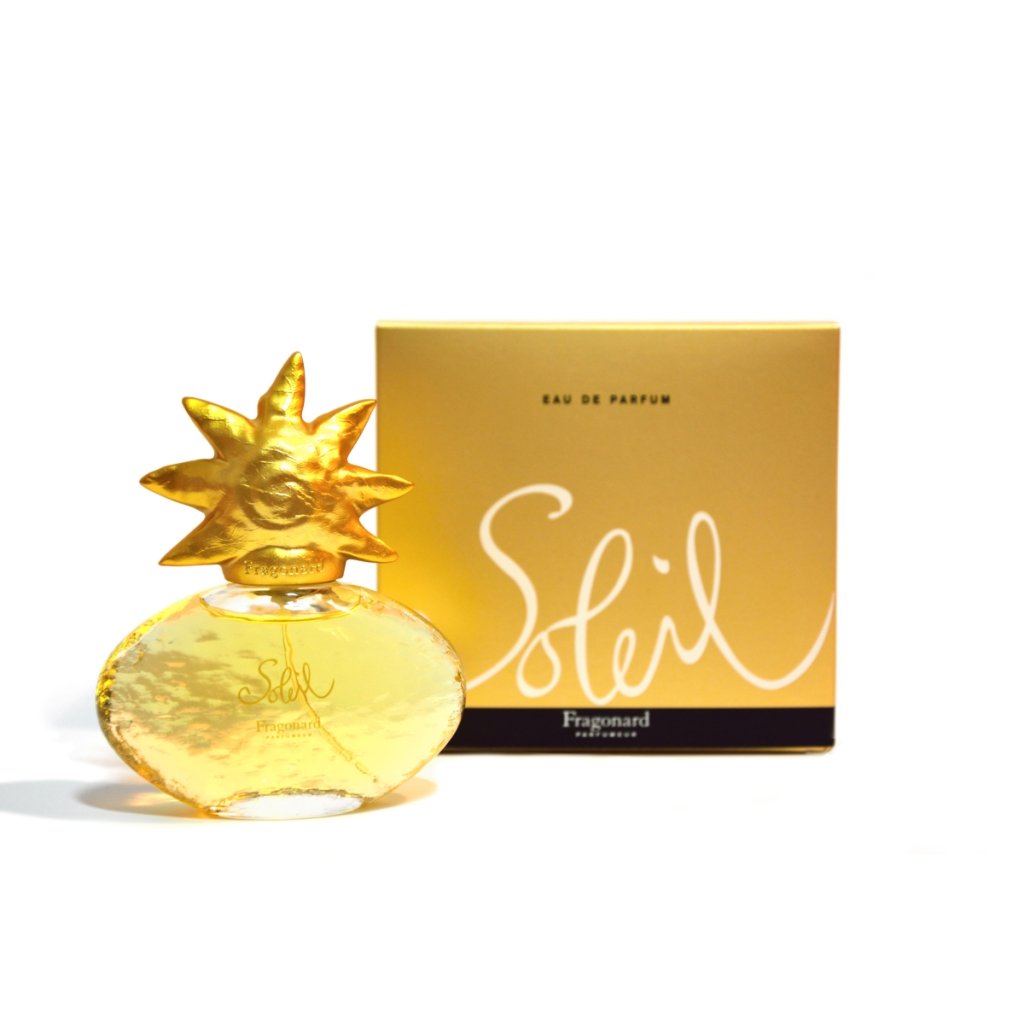 Soleil je opojná směs květin - jasmínu a pomerančového květu, lilie a růže, kosatce a vistárie - vyvážených ambrou, santalovým dřevem a mošusem. Intenzivně vyzařující vůně, která neodolatelně evokuje polední jižní slunce. Pravá a skvělá Fragonard klasika!